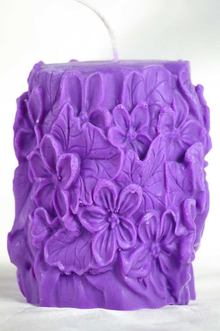 Handgemaakte sculptuurkaars van Europese soja- en lijnzaadwas, in een zachte lila paarse tint. Staat symbool voor innerlijke bloei, intuïtie en rust. 195 gram • 8 x 7 cm • Brandtijd 5–8 uur • 100% katoenen lont. Altijd op een schaaltje branden.