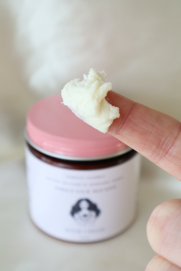 Een handgemaakte whipped body butter speciaal voor het borstgebied. Gemaakt van ongeraffineerde shea boter, kokosnootboter, arganolie en rozen etherische olie. Onderdeel van de Embrace Your Self Love lijn en ontworpen als dagelijks ritueel van zelfliefde en verzorging.