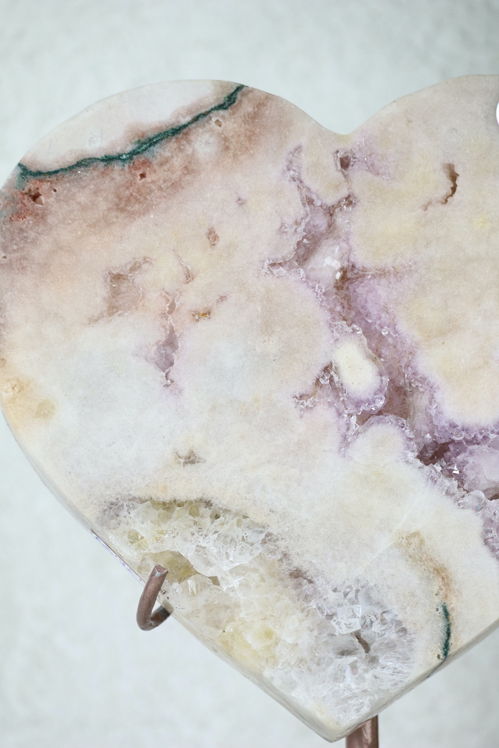 Het Chalcedoon met Amethist Hart op Standaard is een ideale metgezel voor iedereen die zijn hartchakra wil openen, emoties wil balanceren en spirituele bescherming zoekt. De combinatie van deze twee krachtige kristallen maakt dit hart een waardevolle aanvulling voor je spirituele praktijk en een mooie toevoeging aan je interieur. 🌸✨