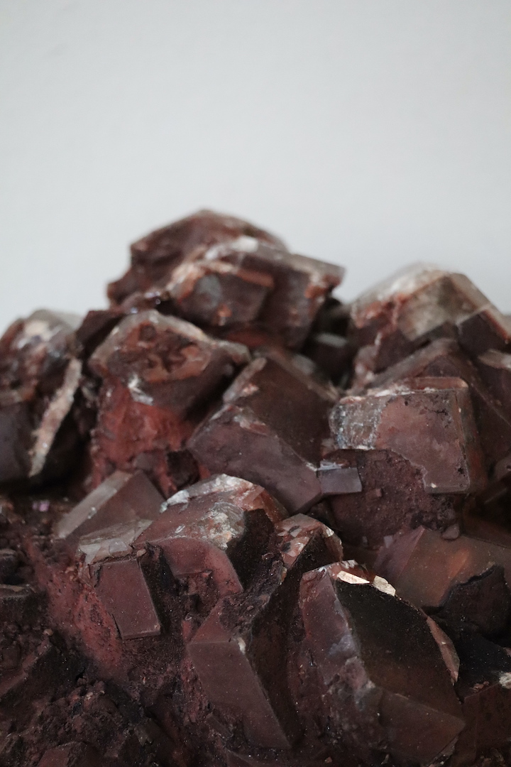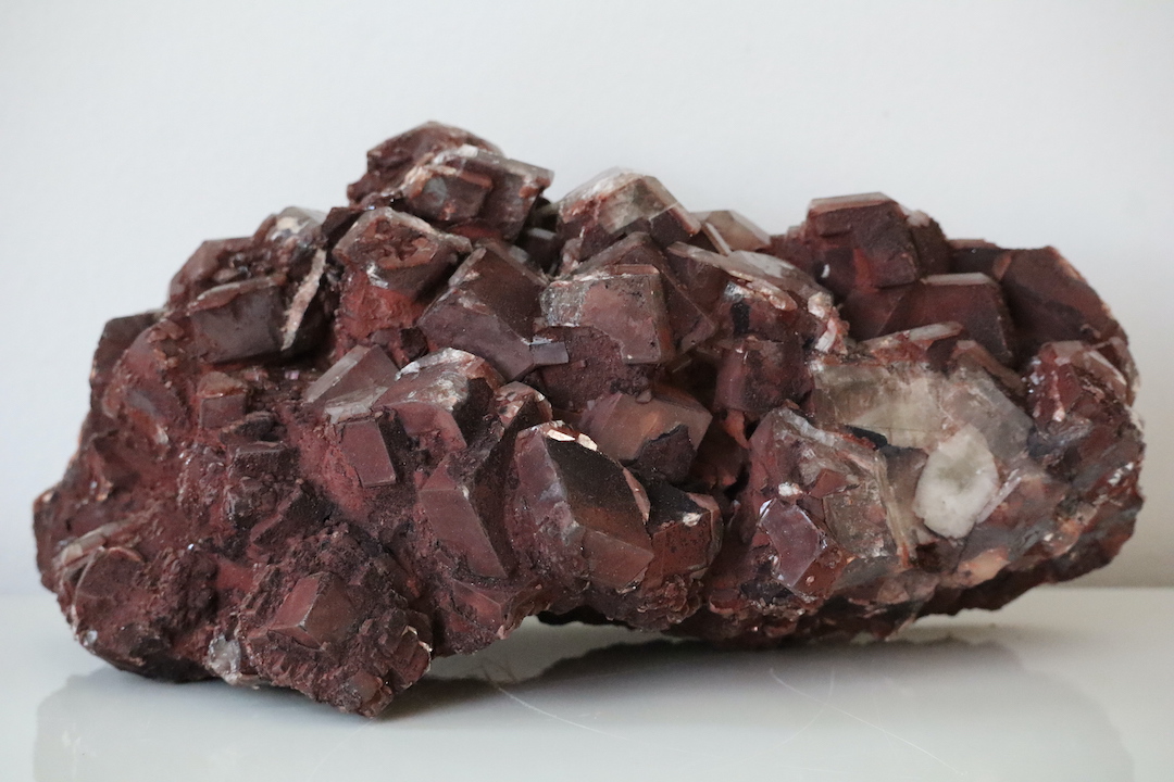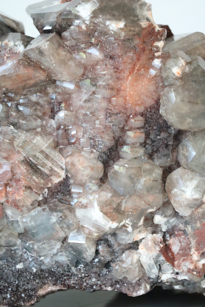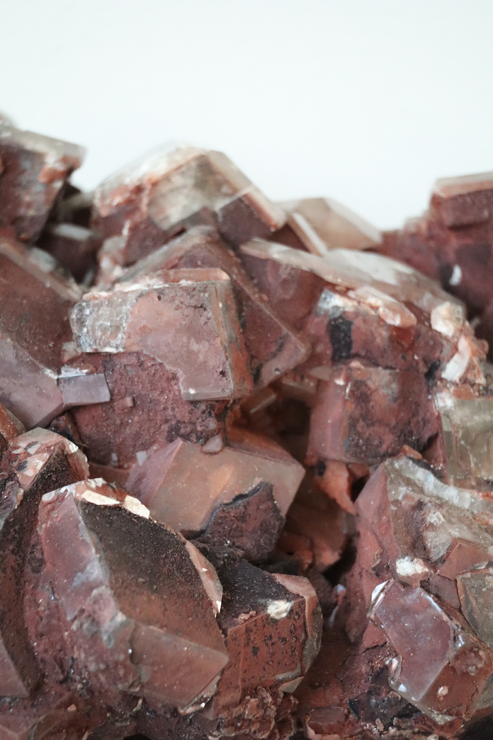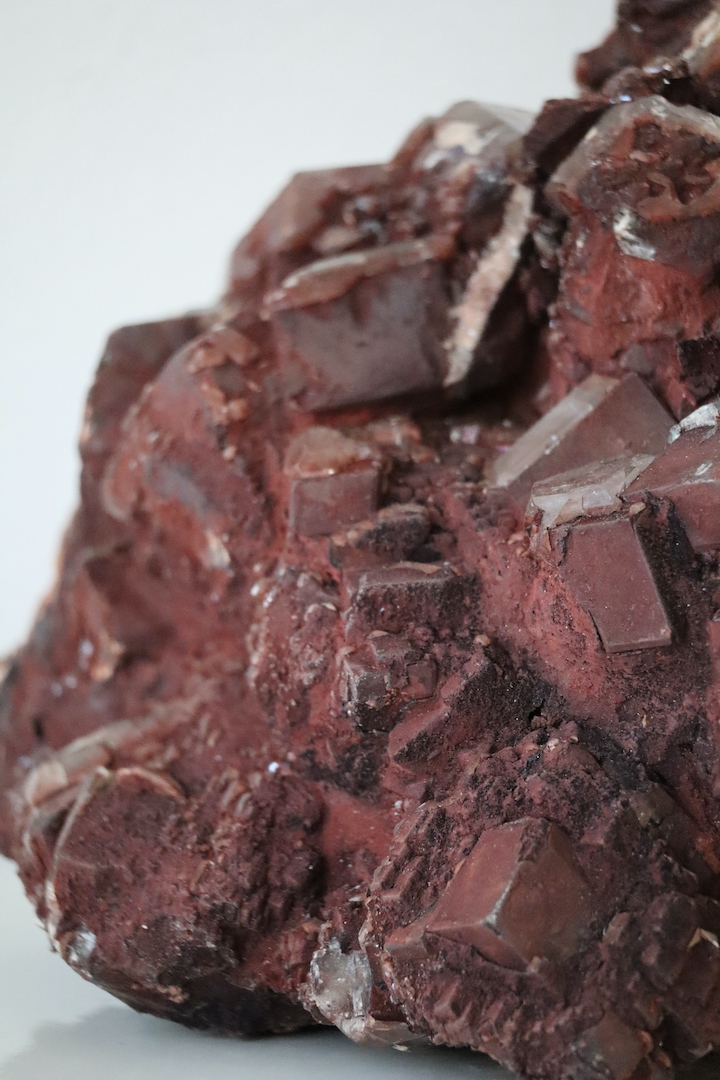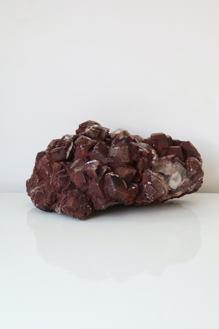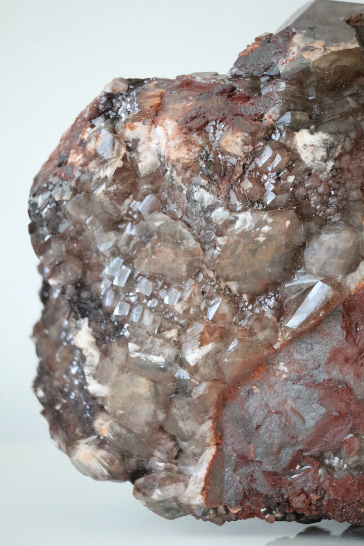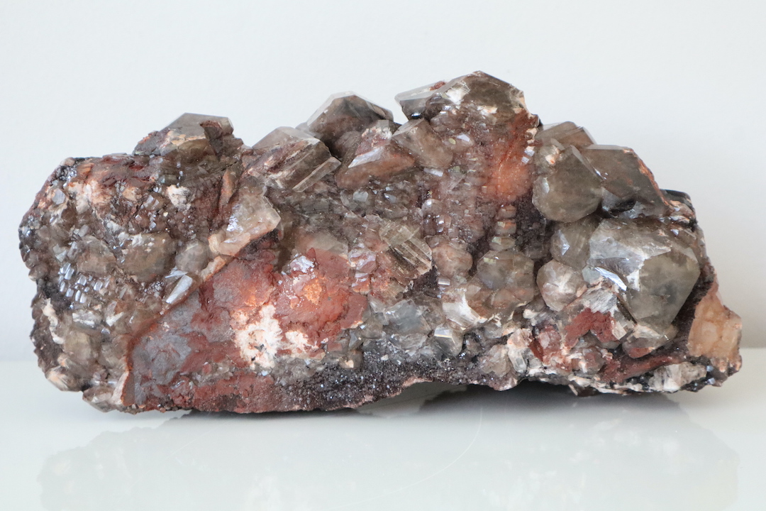 Imposante Chocolade Calciet cluster (Calciet met hematietinsluitsels) van 4,51 kg. Kristalvorm rhomboëder, afkomstig uit de Leiping Mijn, China.