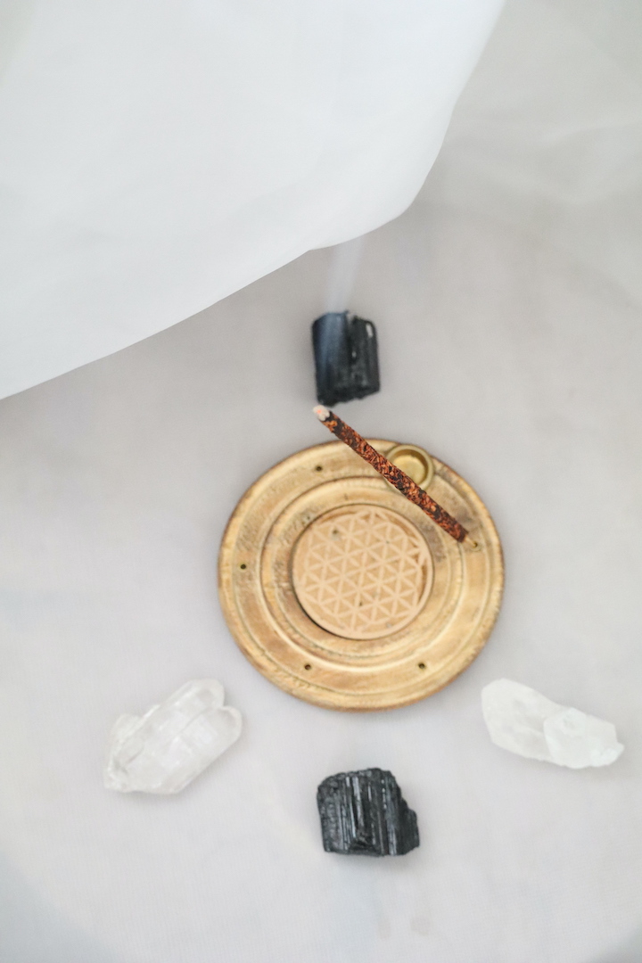 Steek daarna de Protection wierook of het Palo Santo stokje aan om de ruimte te reinigen met geur en intentie.