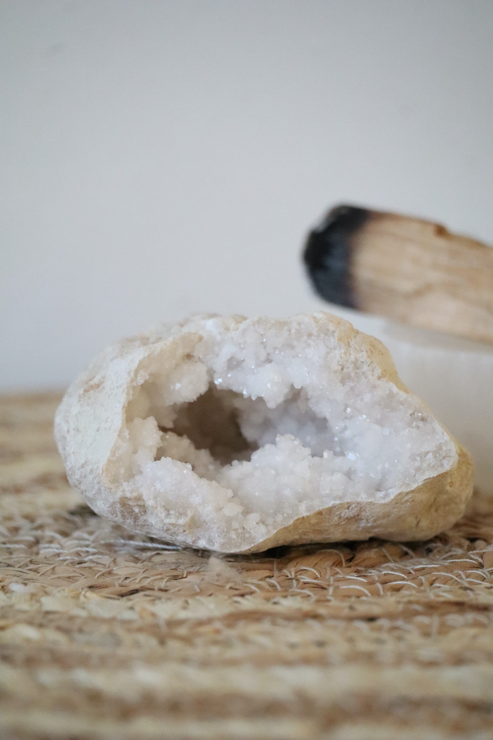 Dankzij haar organische vorm en zachte uitstraling is dit een prachtig stylingobject voor op een altaar, salontafel, nachtkastje of meditatiehoekje. De geode combineert mooi met kaarslicht, wierook, palo santo of andere natuurlijke materialen.