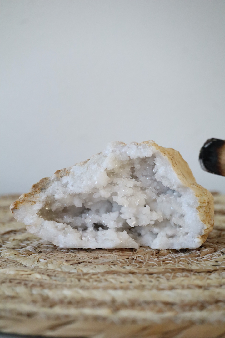 Een geode die niet overweldigt, maar juist ruimte creëert. Een uitnodiging om te vertragen, te landen en helderder te voelen.
