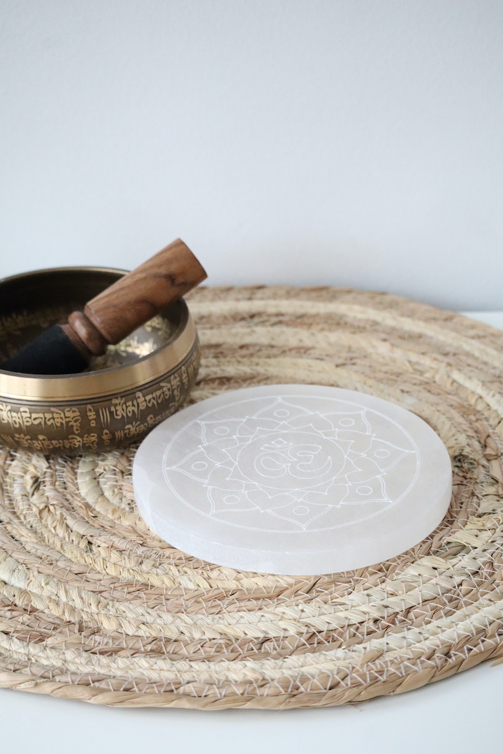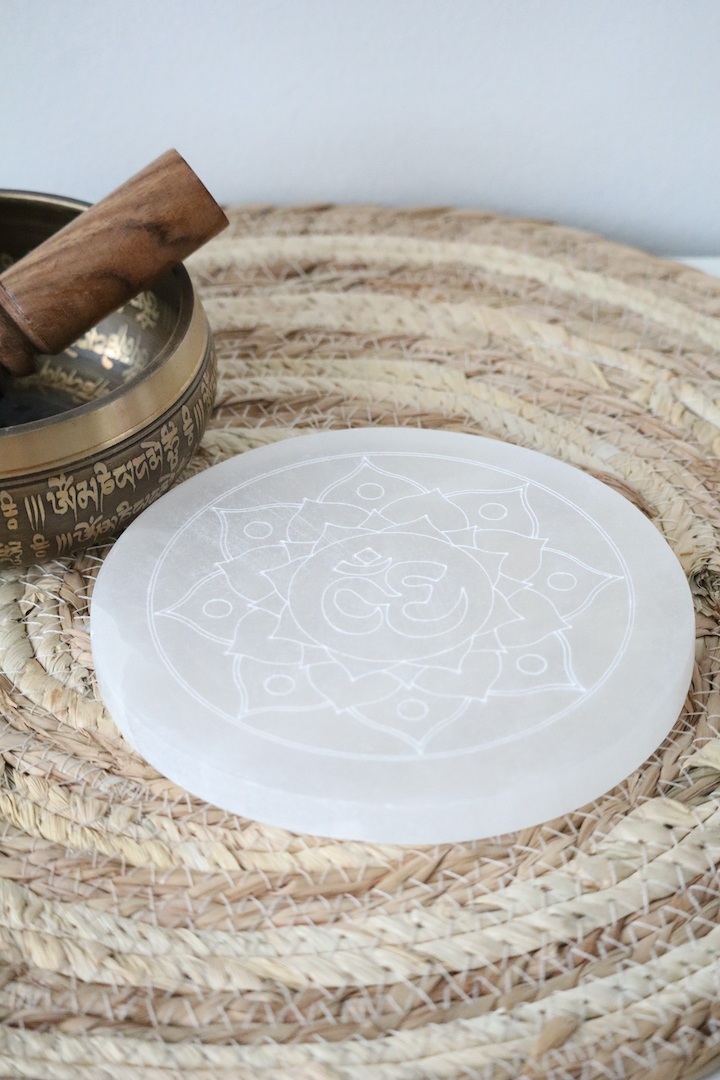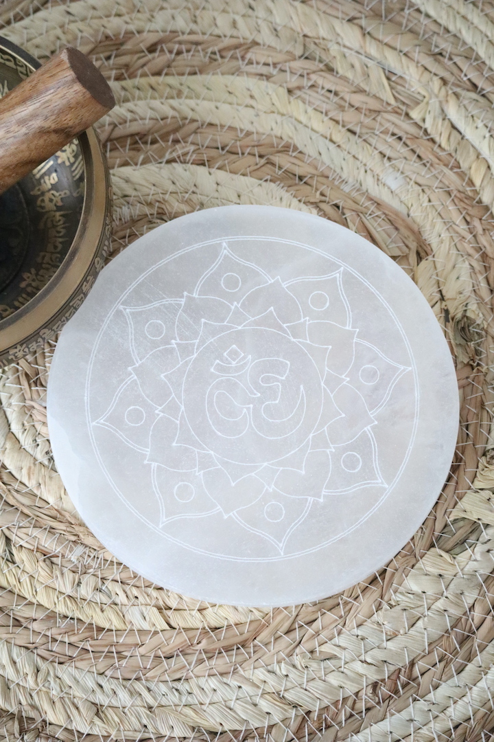 Naast haar energetische werking is deze Ohm seleniet schijf ook een esthetisch object. De rustige witte tint en het fijne lijnenspel maken haar tot een subtiele blikvanger in een sacred corner, op een altaar, nachtkastje of meditatieplek. Ze brengt licht, zachtheid en een gevoel van ruimte — zonder te overheersen.