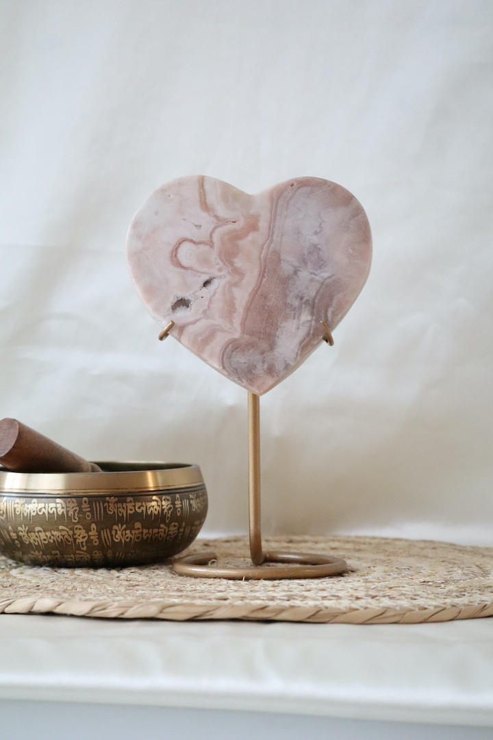 Dit roze chalcedoon hart past perfect in een interieur waar rust, zachtheid en natuurlijke materialen centraal staan. Het is een bijzonder object voor wie bewust kiest voor kwaliteit boven kwantiteit en voor woonaccessoires die niet schreeuwen, maar fluisteren.