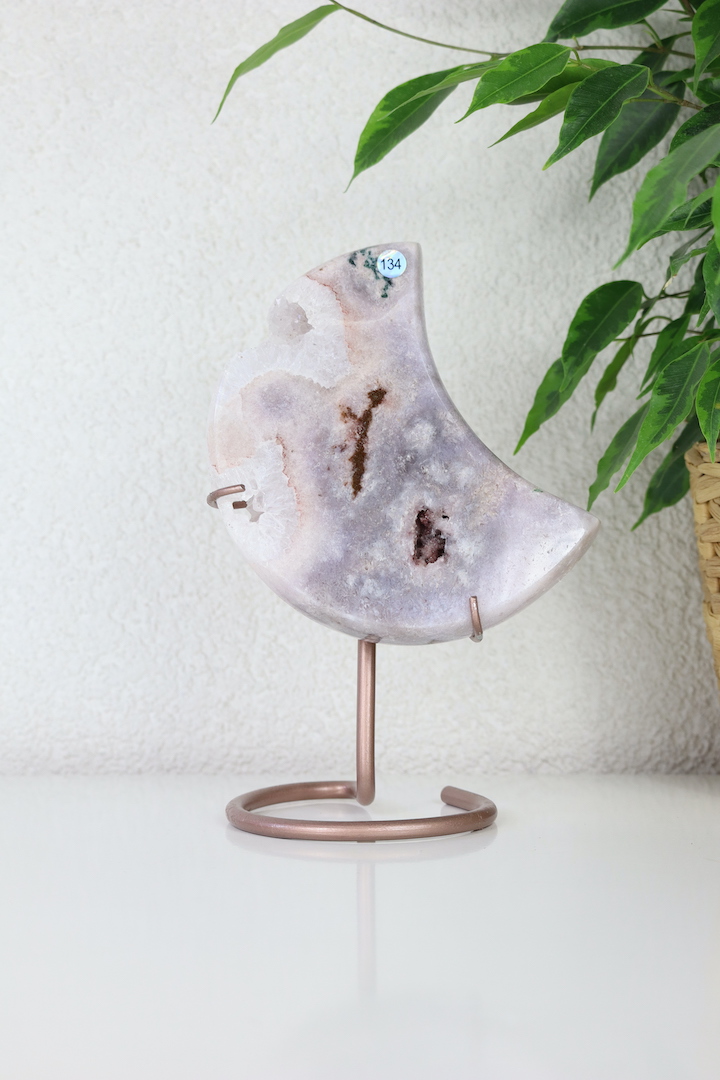 Roze met Paarse Chalcedoon met Kwarts Maan op Standaard – 134
