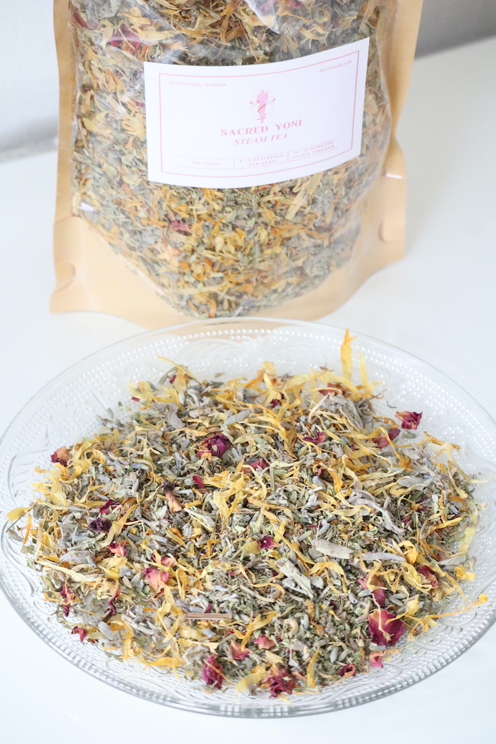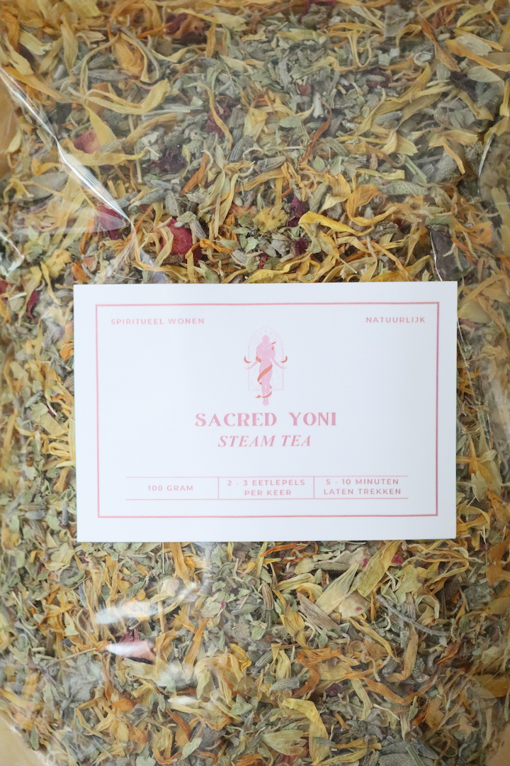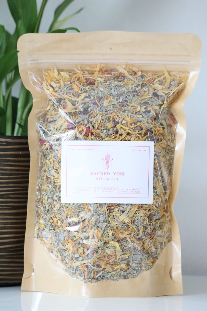 De Sacred Yoni Stoom Thee van Spiritueel Wonen is een zorgvuldig samengestelde kruidenmelange die dit traditionele ritueel op een hedendaagse, zachte manier ondersteunt.
