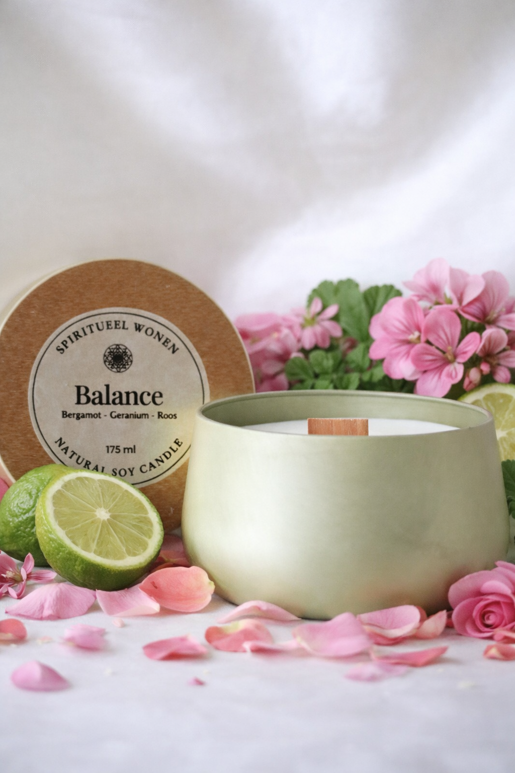 Rust ontstaat wanneer lichaam, gedachten en omgeving weer op één lijn komen. De Balance Ceremoniële Intentie Kaars is ontwikkeld voor momenten waarop je bewust wilt vertragen en terug wilt keren naar een gevoel van innerlijke harmonie. Deze luxe kaars van 175 ml is met de hand vervaardigd uit 100% natuurlijke sojawas en verrijkt met zorgvuldig geselecteerde, natuurzuivere etherische oliën van bergamot, geranium en roos.