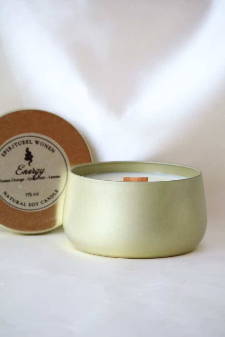 Energy wordt met de hand gegoten van sojawas verrijkt met kokosolie. Deze combinatie zorgt voor een mooie, gelijkmatige verbranding en een zachte geurverspreiding.