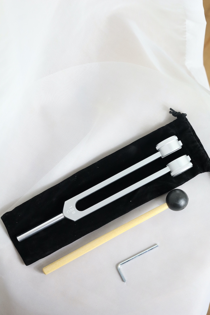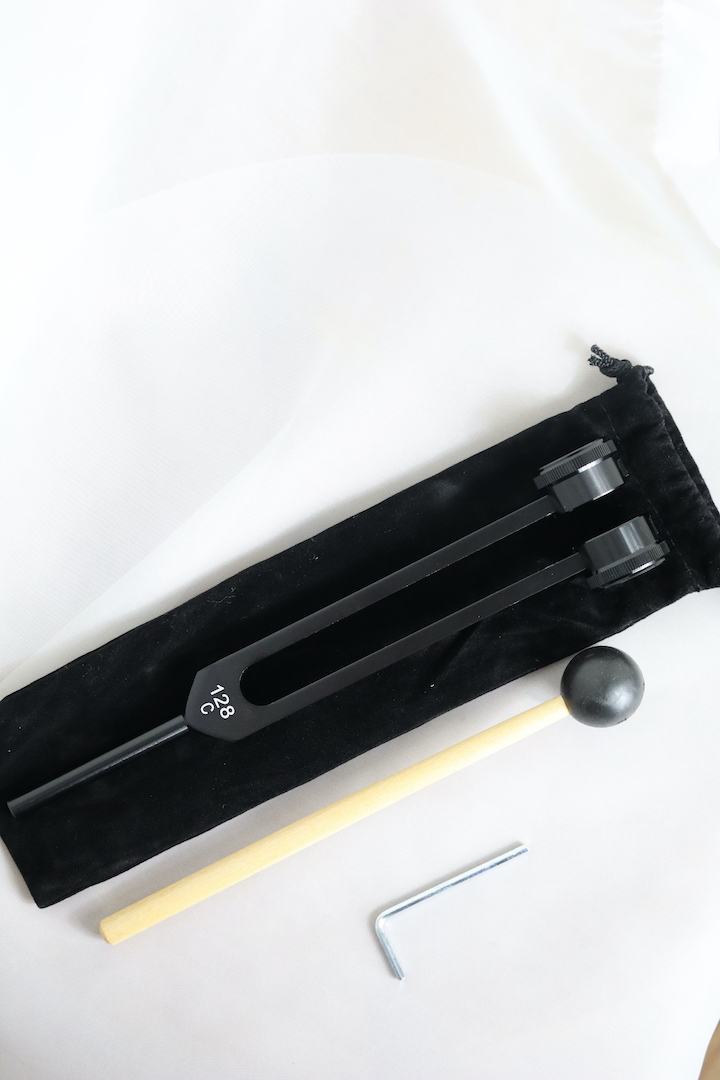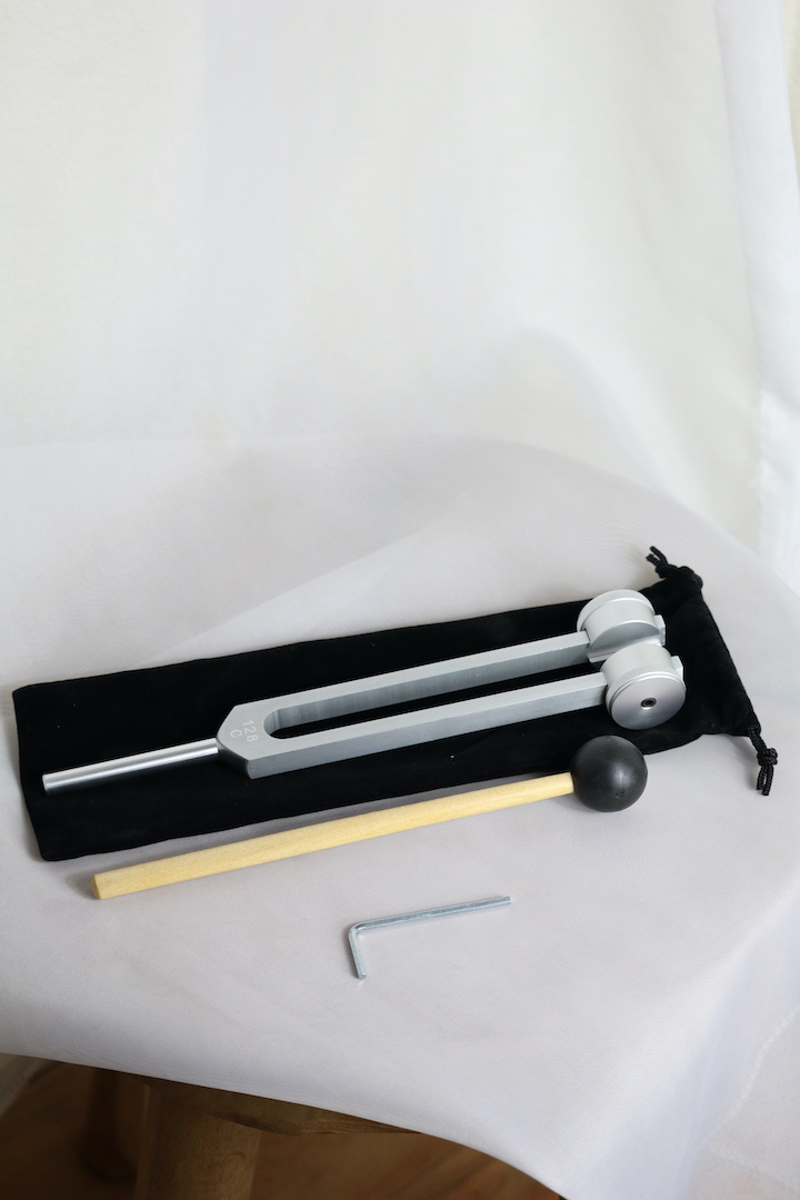 De 128 Hz stemvork wordt gezien als een universele basisfrequentie: diep, kalmerend en aardend. Ze helpt bij stress, overprikkeling, vermoeidheid en gevoelens van onrust. Door de vibratie op het lichaam te plaatsen, ontstaat subtiele ontspanning in spieren, fascia en zenuwbanen. Wanneer je de dempers verwijdert en de stemvork aanslaat, ontstaat er een helder, zuiver geluid dat ook op energetisch niveau harmoniserend werkt.
